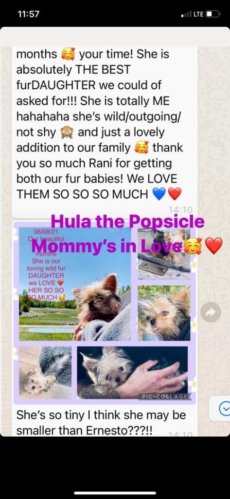 Here you will find just a few pictures and testimonials from some of the many families who adopted a puppy from us over the 2-plus decades we have been breeding. If you have purchased from Tiny Paw Boutique and would like to leave a review and picture, please do so below.